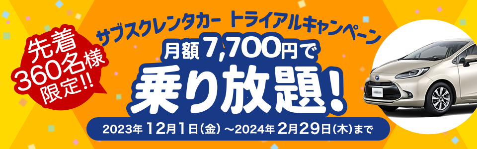 サブスクレンタカートライアルキャンペーンの内容は下記をご確認ください。