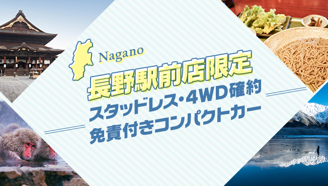 長野駅前店限定 免責付き コンパクトカー、スタッドレスタイヤ、4WD確約 キャンペーン