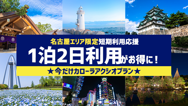 名古屋エリア限定 短期利用応援1泊2日利用がお得に!★今だけカローラアクシオプラン