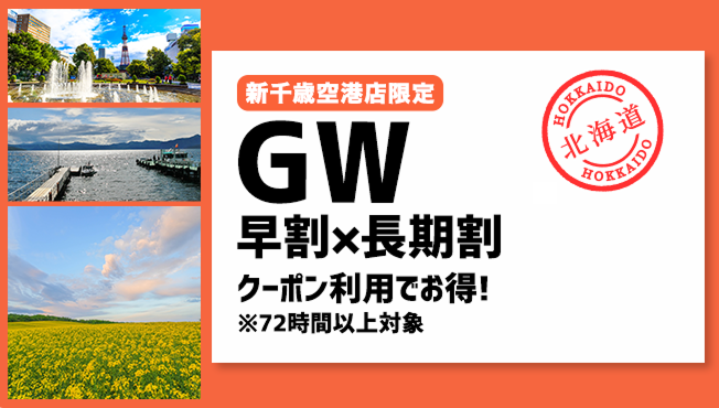 【新千歳空港店限定】GW早割×長期割!【72時間以上対象】◆クーポン利用でお得!