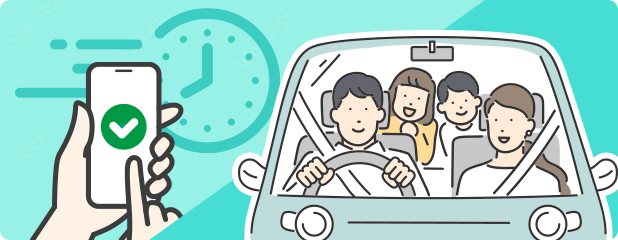 従来の店舗受付での本人確認やお支払い手続きが不要になり、店舗到着後はすぐに車両の受け取りが可能。待ち時間が限りなく短縮されスムーズに出発いただけます。