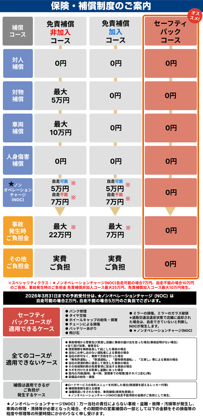 - ※当サービスへの加入は、免責補償制度ご加入のお客様に限ります。