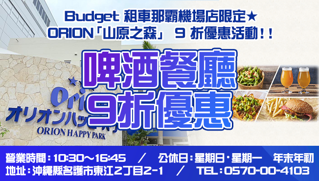 Budget 租車那霸機場店限定!ORION「山原之森」 9 折優惠活動!!