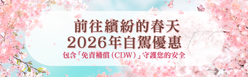 前往繽紛的春天:2026年自駕優惠 包含「免責補償(CDW)」守護您的安全